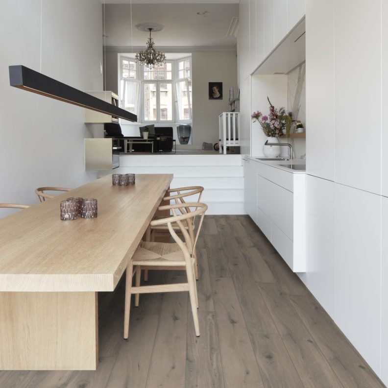 La calda atmosfera e la bellezza delle venature del legno naturale catturate in un pavimento facile da pulire, resistente ai graffi e che durerà per sempre.