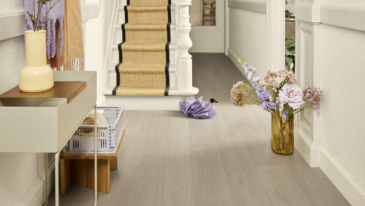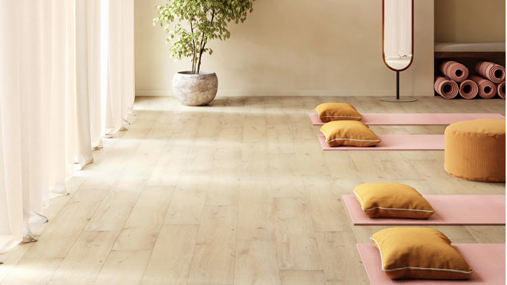 La calda atmosfera e la bellezza delle venature del legno naturale catturate in un pavimento facile da pulire, resistente ai graffi e che durerà per sempre.