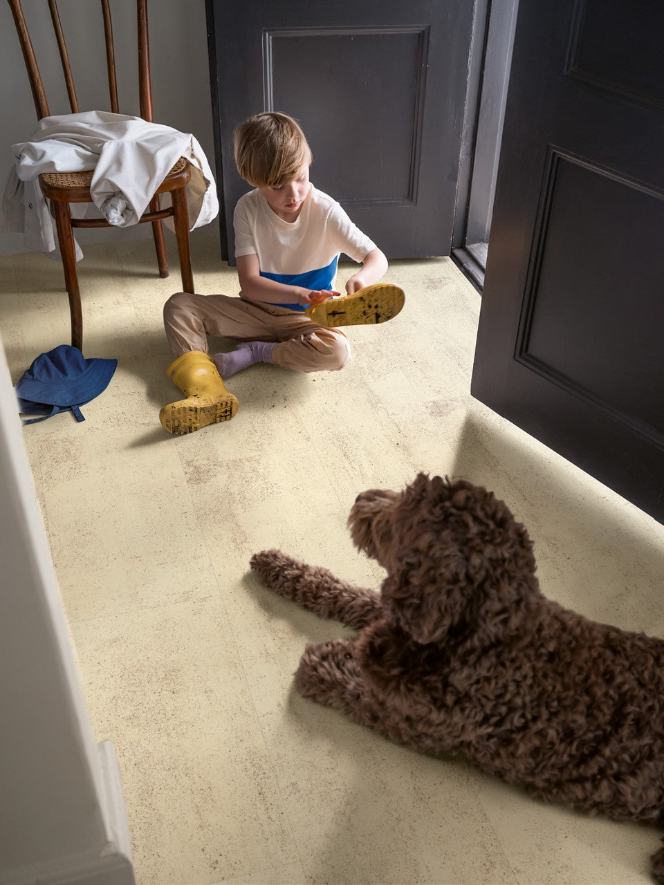 Il formato in piastre del pavimento in vinile rigido Viskan assicura un twist moderno grazie ai decorativi minerali, senza mettere in secondo piano l'estremo comfort di un pavimento caldo sotto ai piedi. Le piastre della collezione Viskan sono estremamente realistiche, ma meno fragili della ceramica. Inoltre, grazie all'elevata resistenza agli urti, la caduta di oggetti su questi pavimenti desta meno preoccupazioni. Il pavimento in vinile rigido Viskan è estremamente performante, grazie a un nucleo extra stabile e una superficie dall'elevata resistenza a usura e macchie. Il pavimento è impermeabile e presenta una superficie a tenuta stagna, il che lo rende un'ottima scelta anche per ambienti come la cucina o l'ingresso. Viskan è facile da posare grazie al sistema a incastro Uniclic®. È inoltre dotato di un'opzione Pad pro, con materassino integrato. Viskan è perfetto per i lavori di ristruttrazione ed è facile da posare anche su superfici leggermente irregolari, come i vecchi pavimenti in ceramica.