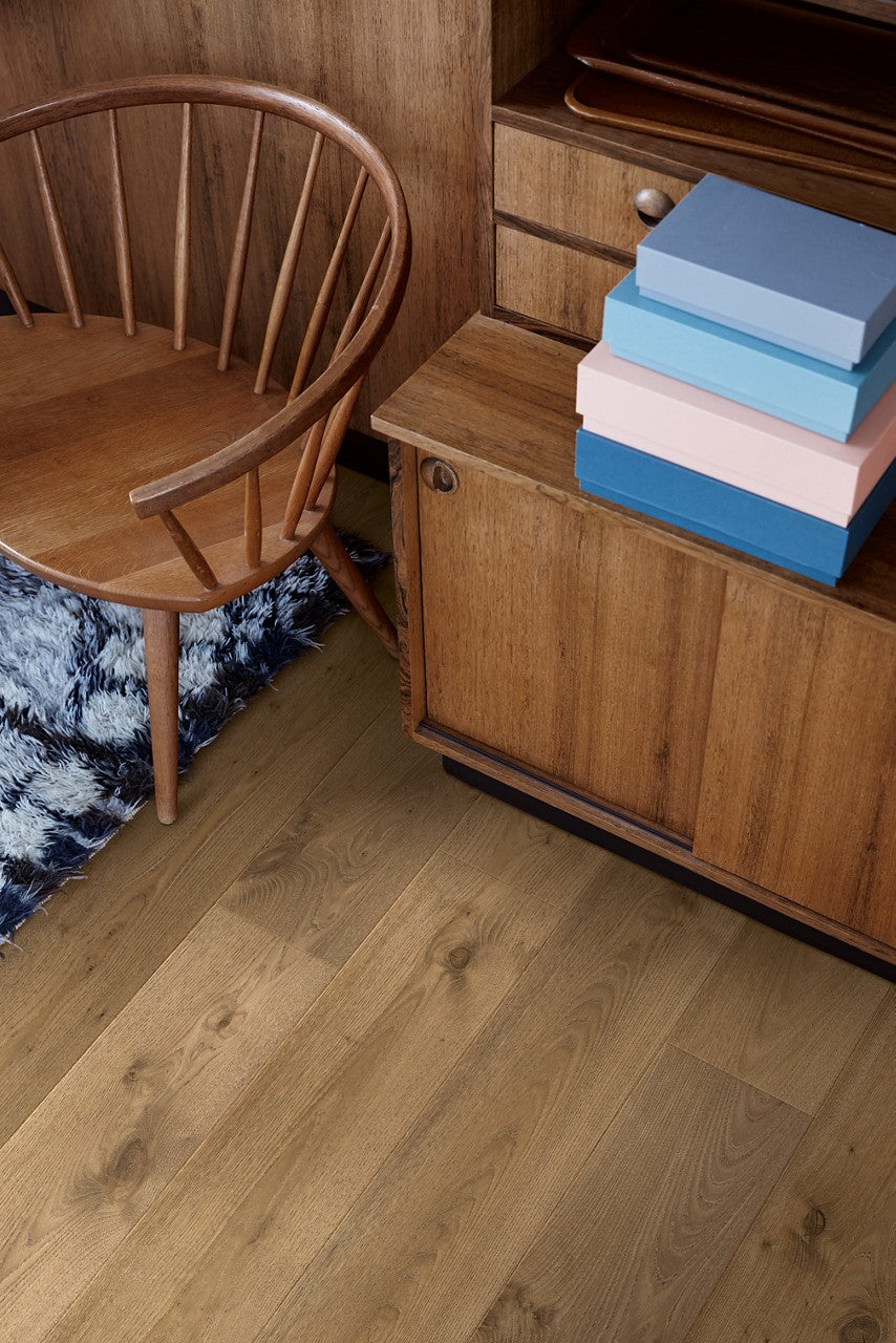 Il pavimento in laminato Aredal (modern plank da 9 mm) con le sue doghe equilibrate e leggermente più lunghe conferisce un aspetto classico a qualsiasi stanza, indipendentemente dalle dimensioni. L'ampia gamma di colori e l'elevata varietà naturale delle doghe, fa sì che tutti possano trovare il pavimento perfetto per la propria casa. Arendal è un pavimento Sensation, il che significa che ha strutture profonde ed estremamente autentiche e una sofisticata finitura opaca. Lo strato superiore protettivo TitanX™ conferisce al pavimento un'elevata resistenza all'usura e, grazie ad AquaSafe, il pavimento è resistente all'acqua e non desta preoccupazioni. Arendal è facile e veloce da posare con il sistema a incastro PerfectFold™.
