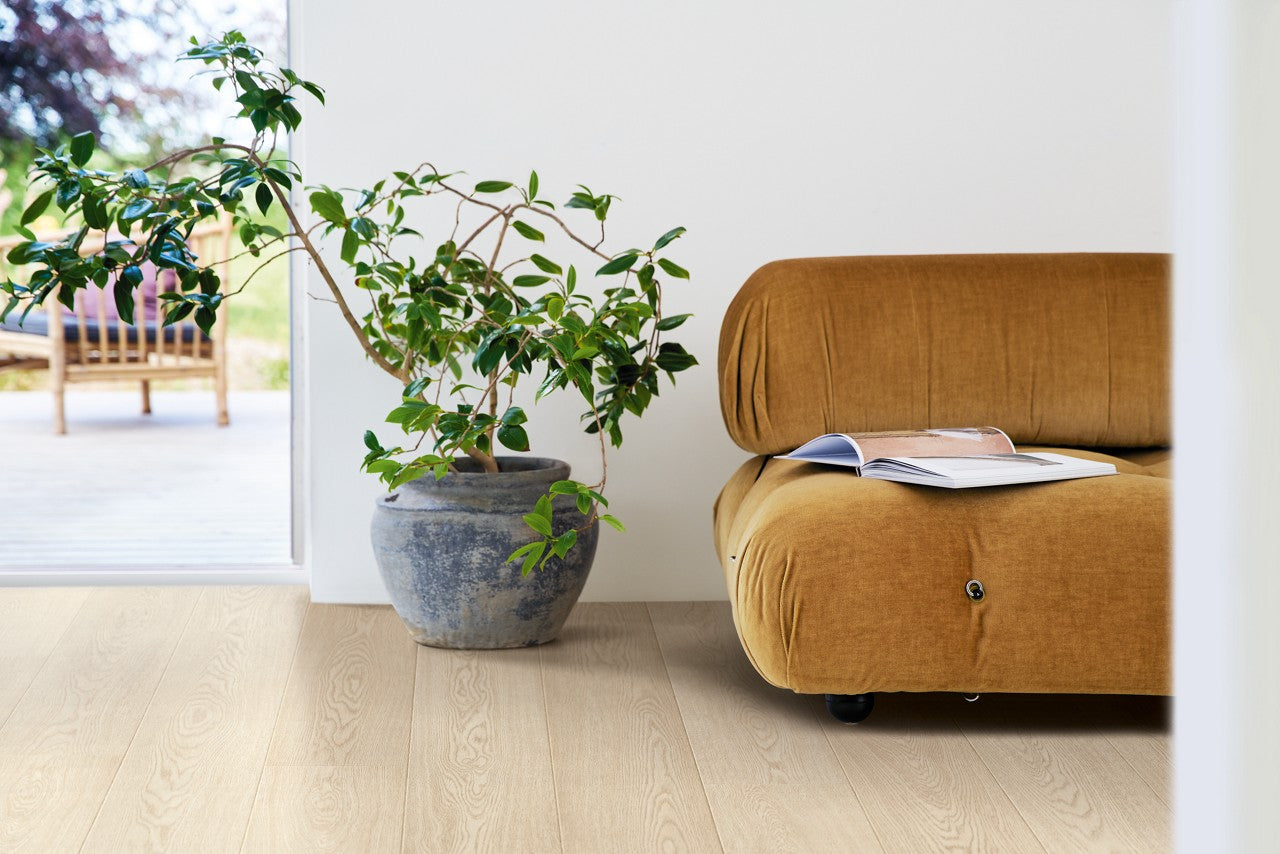 Il pavimento in laminato Aredal (modern plank da 9 mm) con le sue doghe equilibrate e leggermente più lunghe conferisce un aspetto classico a qualsiasi stanza, indipendentemente dalle dimensioni. L'ampia gamma di colori e l'elevata varietà naturale delle doghe, fa sì che tutti possano trovare il pavimento perfetto per la propria casa. Arendal è un pavimento Sensation, il che significa che ha strutture profonde ed estremamente autentiche e una sofisticata finitura opaca. Lo strato superiore protettivo TitanX™ conferisce al pavimento un'elevata resistenza all'usura e, grazie ad AquaSafe, il pavimento è resistente all'acqua e non desta preoccupazioni. Arendal è facile e veloce da posare con il sistema a incastro PerfectFold™.