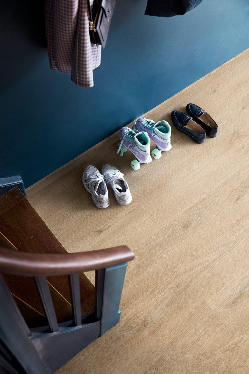 Il pavimento in vingile rigido Glomma ha un'estetica così naturale ed eterea da regalare un tocco scandinavo a ogni spazio. Le doghe hanno dimensioni ben bilanciate e si adattano a stanze di qualsiasi dimensione. Il pavimento in vinile rigido Glomma è estremamente performante, grazie a un nucleo extra stabile e una superficie dall'elevata resistenza a usura e macchie. Il pavimento è impermeabile e presenta una superficie a tenuta stagna, il che lo rende un'ottima scelta anche per ambienti come la cucina o l'ingresso. Glomma Pad pro è eccezionalmente facile e veloce da posare grazie al sistema a incastro Uniclic® e al fatto che viene fornito con materassino integrato. Glomma è perfetto per i lavori di ristruttrazione ed è facile da posare anche su superfici leggermente irregolari, come i vecchi pavimenti in ceramica.